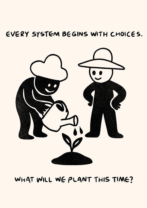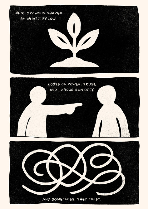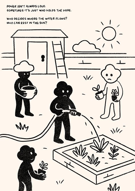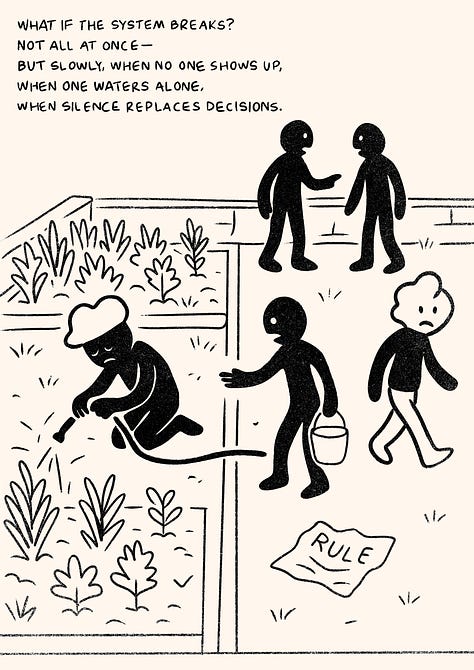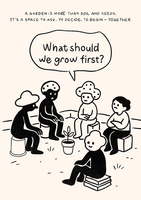 We talked about food. About commons. About how power flows in subtle ways; who holds the hose, who makes the rules and who quietly stops showing up.
