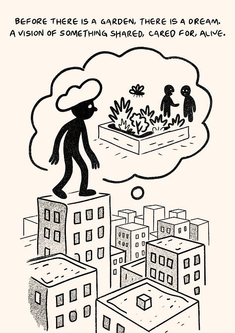 And I kept thinking: What can a rooftop garden teach us about care, power, and collective life?